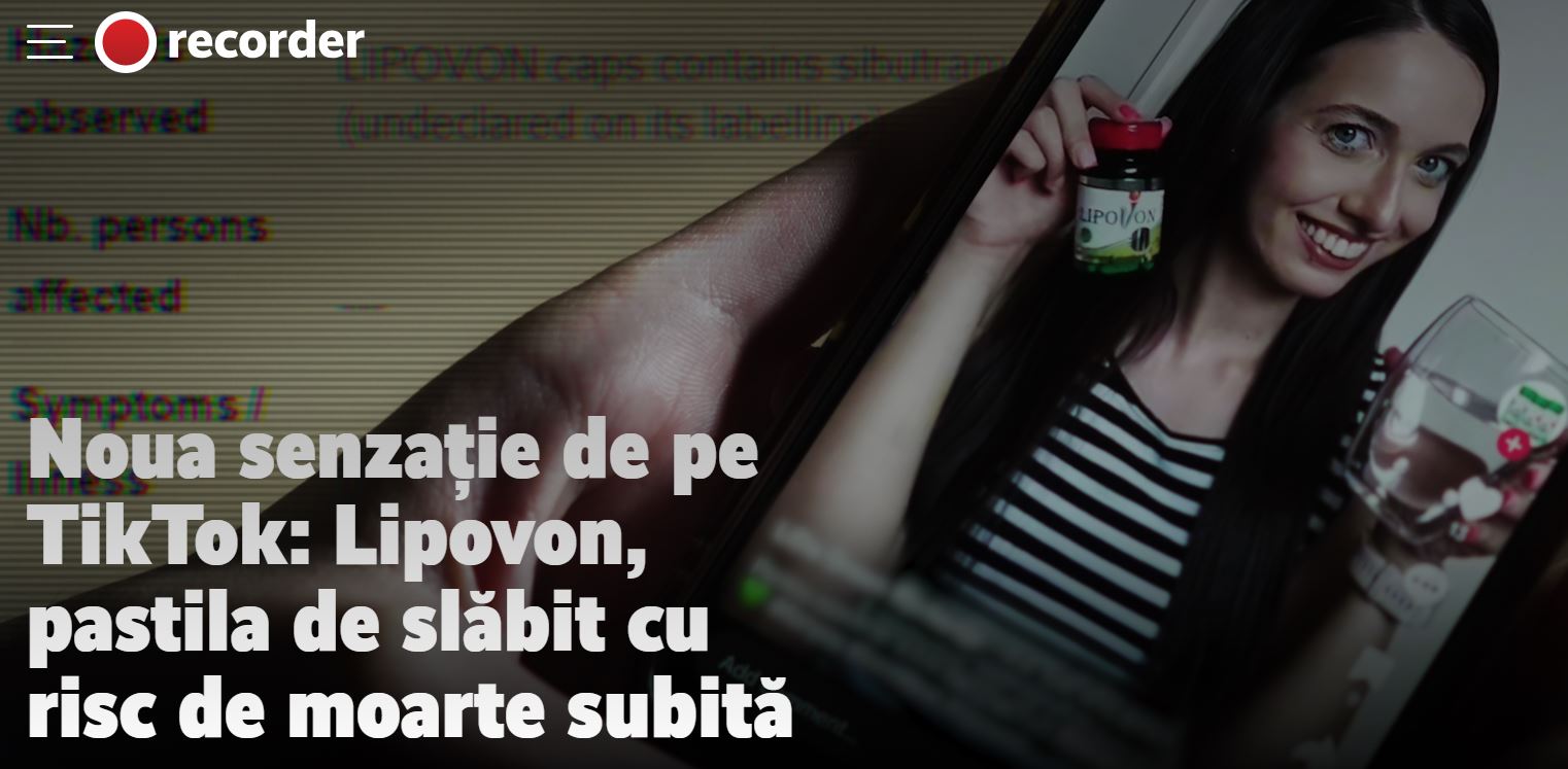 Recenta investigație realizată de echipa Recorder și preluată apoi și de către alte redacții trebuie să fie cunoscute, și mai ales conștientizate, de publicul larg, care ar trebui să înțeleagă imensul risc asumat pentru sănătate atunci când achiziționează un produs de tipul LIPOVON pastile de slăbit care nu îndeplinește obligația legală de a fi notificat la autorități pentru introducerea pe piață, în conformitate cu reglementările în vigoare, continuă comunicatul transmis.