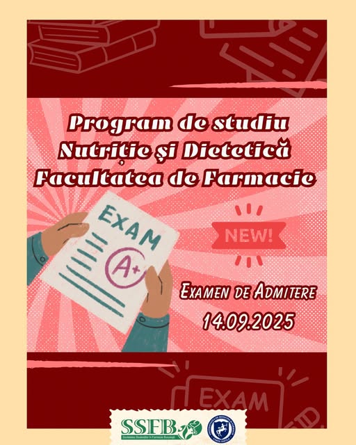 Începând cu acest an universitar, Facultatea de Farmacie din București lansează programul de licență „Nutriție și Dietetică” – o oportunitate unică de a te forma într-un domeniu aflat în continuă dezvoltare, cu un impact major asupra sănătății publice.